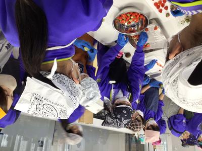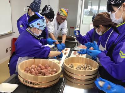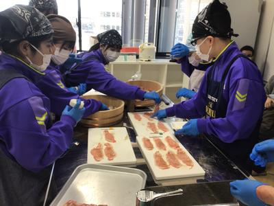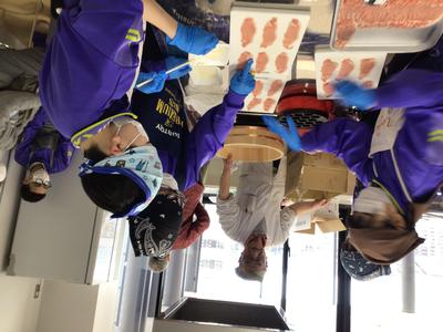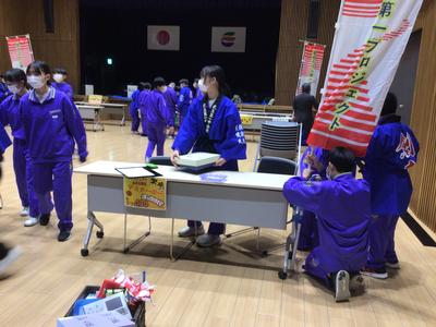 1年2組、3組、5組の生徒が「越前たけふ第一プロジェクト」として開発した商品を市役所で販売しました。2組は3種類のドリンク、3組はワッフルとパンケーキ、5組は肉巻きおにぎりを提供しました。