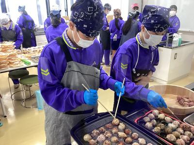 1年2組、3組、5組の生徒の「越前たけふ第一プロジェクト」の様子です。心を込めて商品を準備しました。