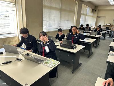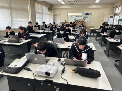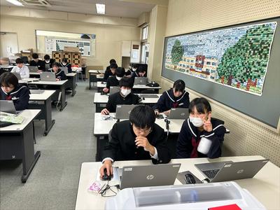 2年4組の技術の様子です。自分が訪れたい箇所のリーフレットを作成しています。見所などをまとめ、上手にレイアウトしていました。