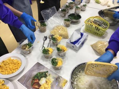 1年1組と4組の「越前たけふ第一プロジェクト」の販売活動の様子です。を行いました。制作までの道のりを表した掲示物や商品を上手に表したポスターなどで上手に商品を紹介していました。