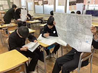 1年2組の社会科の様子です。越前市の地図を使って、地図の読み方の練習をしました。