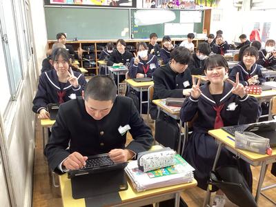 2年5組の学級活動の様子です。タブレットを使ってメッセージを書き込んでいました。