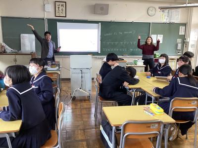 1年4組の英語の様子です。最後の授業になりました。ALTと楽しく活動しました。