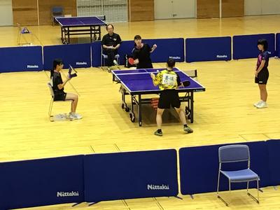 初日は低学年、2日目には全学年の個人戦が行われました。顧問の先生から、「個人戦は自分のために精一杯がんばれ」と言われて、みんなが大きな声で「はい!」と返事をしていました。これまでの練習の成果を十分に発揮できて満足した成績を上げられた生徒、悔しくて涙を流す生徒、いろいろいました。負けた試合であっても、諦めずに最後まで粘り強くプレーしている姿が印象的でした。来月の県大会に出場する選手には、精一杯頑張ってほしいと思います。