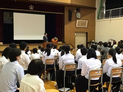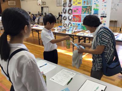 今年も坂口校学習発表会は地区敬老会と合同開催しました。朝から敬老会に参加されるおじいちゃん、おばあちゃん、保護者のみなさん、卒業生、地域の方々たくさんの方々が坂口校体育館に来てくださいました。メッセージつきのプレゼント、たくさんの生徒たちの作品の展示を準備して歓迎準備は万端です。
