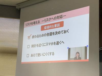 NTT docomoの方から、オンラインでスマホ、インターネットとの上手な付き合い方についての講座を受けました。生徒たちは、スマホとの付き合い方についてダラダラと動画を見ているのはリスクが高いと答えました。発信については何をリスクと考えるのか、アンテナを高く張ることが大切である、SNSの3つの特徴である記録性、特定性、拡散性を念頭に置いて発信することなど大切なことをたくさん学びました。保護者の方々にも一緒に講座を聞いていただきました。今後、ご家庭で自分ごととしてネットとうまくつきあっていくことについて話し合っていただけるとありがたいです。