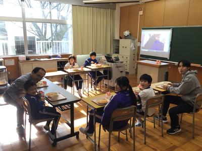 今日は給食週間のイベントの一つで、みんなが楽しみにしているシャッフル給食を行いました。坂口校全体で学年を解いて、先生方も含めて、みんなで給食を楽しみました。いつもとは違うメンバーで食べる給食でみんな楽しそうに食べていました。お昼の放送では、今日の給食メニューのスープに入れる鶏団子を調理員さんが作っているビデオが流れました。給食週間は今週いっぱい続きます。次のイベントが楽しみです。