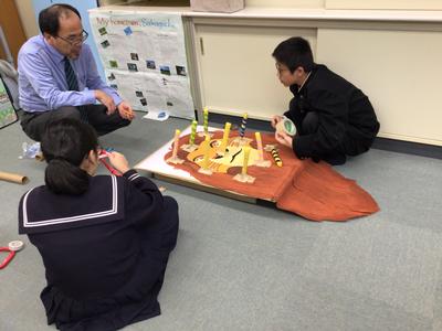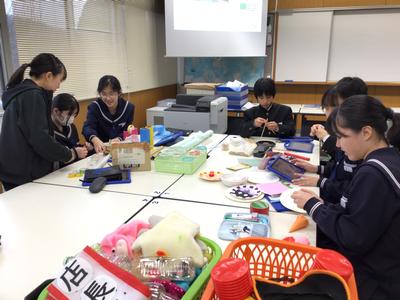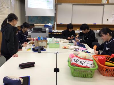 SKP第二弾は、今週末の坂口地区親子クリスマス会に参加します。今日は、そのクリスマス会に参加する子どもたちみんなが楽しめるゲームを作っています。3年生は参加しませんが、家庭科で作ったおもちゃを提供してくれました。みんなが喜んで遊んでくれるとうれしいです。