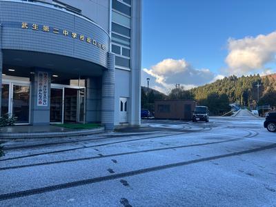 今朝は久しぶりに降雪し、うっすらと雪が積もりました。地面が凍っていたので生徒たちは慎重に歩いて登校していました。いよいよ冬到来です。