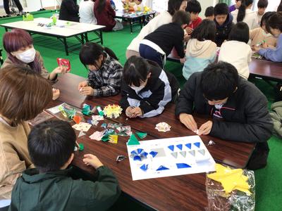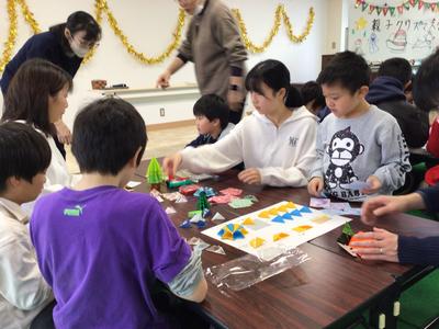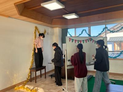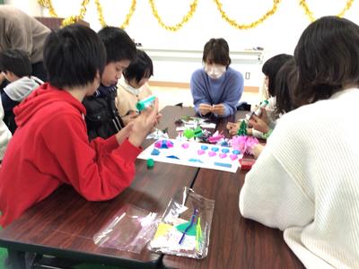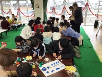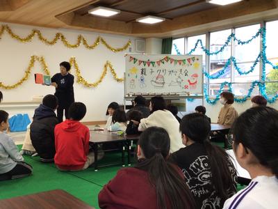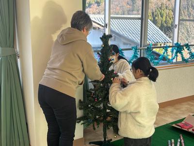 坂口活性化プロジェクト第2弾は、地区親子クリスマス会への参加です。総合的な学習の時間で作ったゲームを4種類用意してみんなに楽しんでもらいました。まずは、会場の飾り付け、クリスマスリース作りでは小学生のサポート、そしてゲームコーナーの運営と大活躍しました。最後に男子生徒がサンタの衣装に着替え、小学生のみんなにプレゼントを渡しました。地区のみなさんを笑顔にし、みんなにありがとうと感謝されて生徒たちもうれしそうでした。