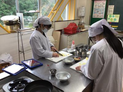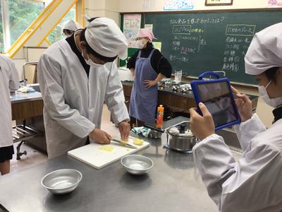 2年生は果物を使って、調理実習をしていました。りんごをみじん切りにしてジャムをつくるそうです。