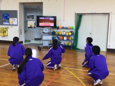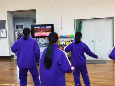 体育ではダンスの授業が行われています。ダンスコンテスト用のビデオを使って、見本を見ながら練習しています。まずは完全コピーをしてから、自分たちのオリジナリティをだそうとしているようです。たくさん話をして、自分たちの振り付けを決めていました。出来上がりが楽しみです。