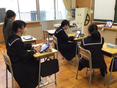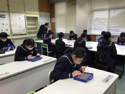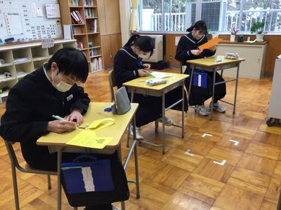 3学期最初の学活では、3年生は新年の目標を紙の絵馬に書きました。1、2年生は校長先生から出された新年の抱負を表す漢字1字のアンケートに取り組みました。苦戦している生徒もいる様子です。