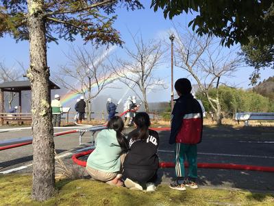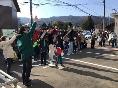 その後、公民館、エコビレッジの駐車場でじゃんけん大会、消防団員による放水、そして、今年1年の地区の安全を願う神事が行われ、坂口校の校長先生が参加されました。地域の伝統がみんなで支えられている場面に子供たちが参加することはとてもいいことだと思います。これからも学校外でも地域の活動に積極的に参加してほしいと思います。