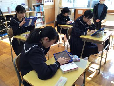 ハッピー委員会の企画でみんなにもっと本を読んでもらおうと、おすすめの本を紹介する企画が始まりました。児童生徒全員がMetaMoJiのシートにおすすめの本の紹介文を書いています。この後は、各クラスの朝の会や帰りの会でそのシートをもとにブックトークをする予定です。