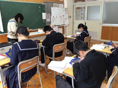 今日は坂口校の学校公開で、3校時は授業公開を行いました。1年生は数学、2年生は国語、3年生は社会の授業を行いました。どの学年も保護者の皆さんに見ていただくことができて、うれしいです。