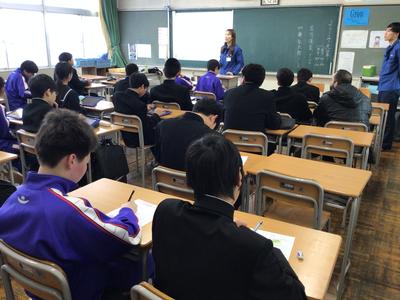 1年生が本校で「ようこそ先輩」の授業に参加しました。自分の興味関心に合わせて事前に講座を2つ選びました。さまざまな職業についてのお話を聞いたり、体験をしたりする中で、将来の自分の職業について楽しく考えることができました。