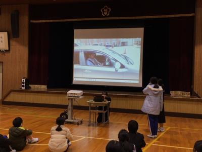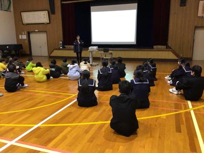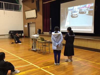 今日は越前警察署の方に来ていただいて、不審者対応の避難訓練を行いました。不審者役の警察官が校内に侵入し、先生方が教室に入れないように必死に防ぎました。訓練終了後、児童生徒対象に不審者に遭遇した時に警察に通報する訓練を行いました。不審者の身体的特徴や車の特徴などしっかりと緊急指令室の方に伝えることを学びました。先生方対象にも講習会があり、緊急通報装置のしくみや不審者と距離を保ち、話をしながら対応することなど対応の際にどうすべきかを警察官の方々から教わりました。