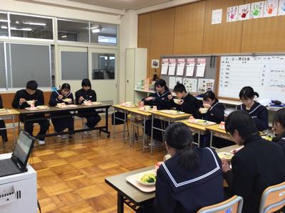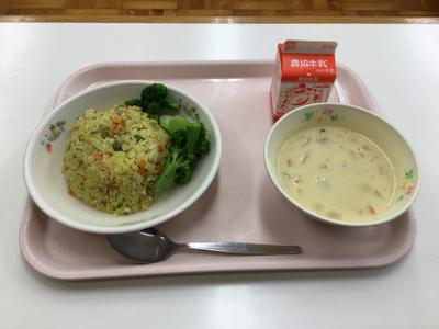 今日のメニューは生徒たちの大好きなカレー料理、カレーピラフとコーンポタージュでした。きれいに盛り付けて、とても美味しそうです。「おいしい人~?」と聞いたら、何人も手を挙げていました。坂口の給食はいつもおいしいです。