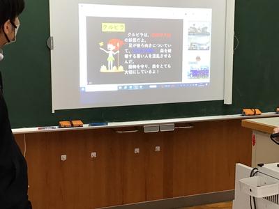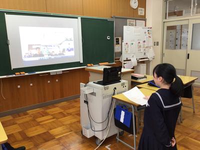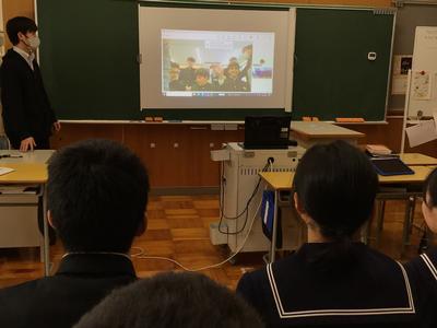 一中、南越中とオンラインでつなぎ、一中のブラジル人の生徒と交流しました。ブラジルの国旗の意味、ブラジルにいる有名な妖怪の話など興味深い話を聞きました。その後、ブラジルの紙幣や救急車のサイレンの音についてのクイズがあり、遠いブラジルですが身近に感じることができました。質問コーナーでは、分校生が聞いた質問に丁寧に答えてくれ、「アマゾン川は危険な生物がいるから行かない」ことや「日本とブラジルの大きな違いは道がきれいで安全なことだ」ということなど、その国の人でないとわからないことをたくさん教えてもらいました。短い時間でしたが、とても楽しい時間になりました。