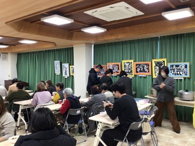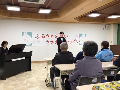 大学で声楽を学んでいる卒業生が地区の皆さんの前で、素晴らしい独唱を披露しました。彼は小学3年生から声楽を学んでいて、県声楽コンクールで入賞しているそうです。今日はアンコールも含めて5曲聞かせていただきました。アンコールは坂口小校歌を会場の皆さんと歌い、心温まるいいステージになりました。会場には坂口校の児童生徒の美術作品などが展示してあり、地区の皆さんが楽しく見てくださっていました。