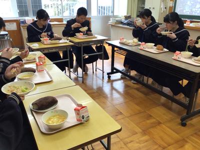 今週の給食は卒業生のリクエストメニューが出ています。リクエストは揚げパンでしたが、調理員さんのご配慮で、パンの味が選べるメニューになりました。きなこやココア味が生徒たちに人気でした。