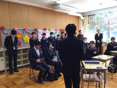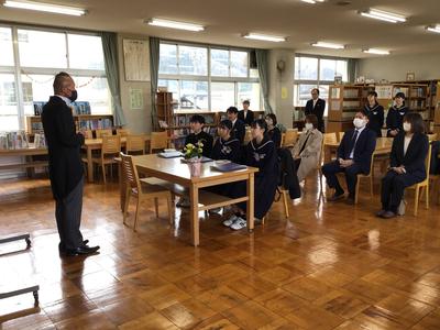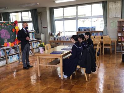 その後、図書室で校長先生のお話をお聞きしました。校長先生は3人に対して「心配することは何もない。分校で学んだことをもとに、高校生活で活躍してほしい」とお話してくださいました。