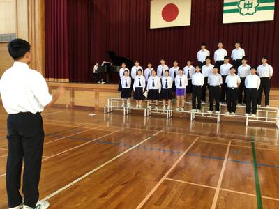 今週最後の合唱練習でしたね。1年4組は明日から産前休暇に入る担任の先生のために素晴らしい歌を贈っていました。