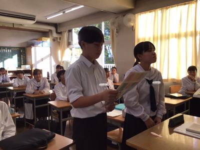 明日から産前休暇に入る先生の最後の帰りの会でした。先生のお話の後、級長がお礼の手紙を読み、寄せ書きを渡していました。とても感動的な帰りの会でした。