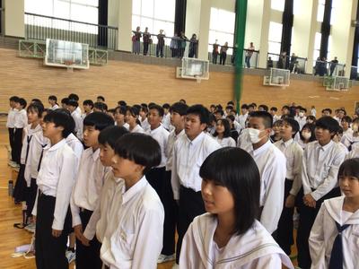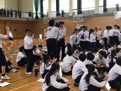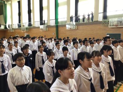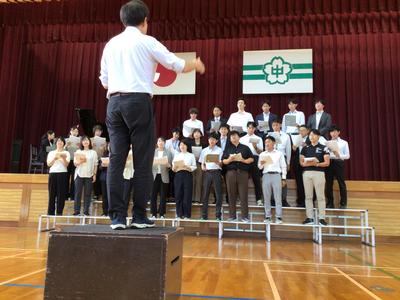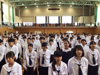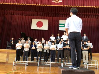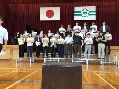 教職員も合唱を披露し、その後はみんなで校歌を歌いました。