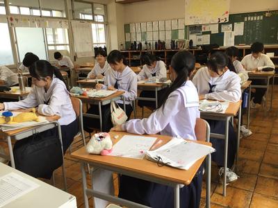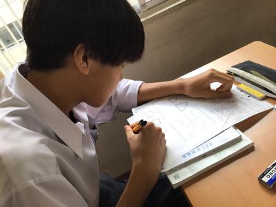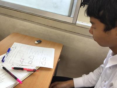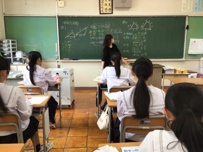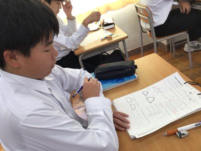3年生の数学は習熟度別に1つのクラスを2つに分けて授業をしていますが、そのうちの1つは相似な図形を学習していました。写真はありませんが、もう1つは関数を学習していました。