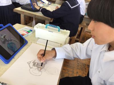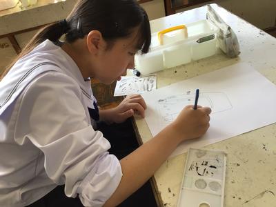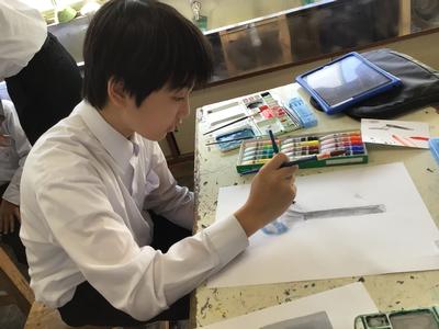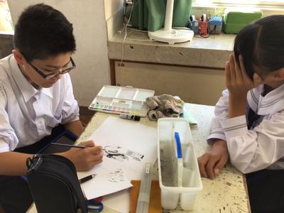 校内にある水道の蛇口、スイッチ、ガスバーナーなどの絵を描いていました。とても上手で感心しました。