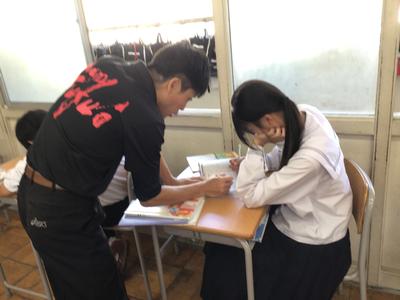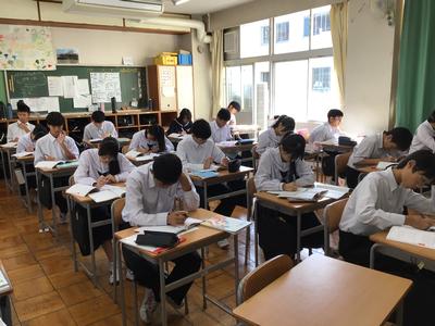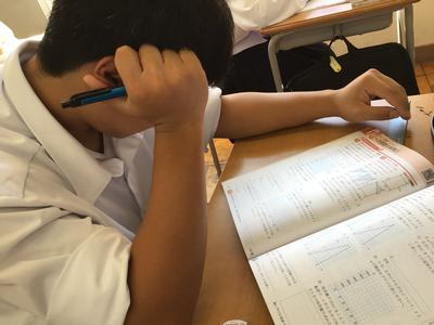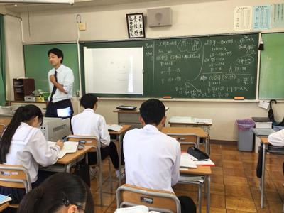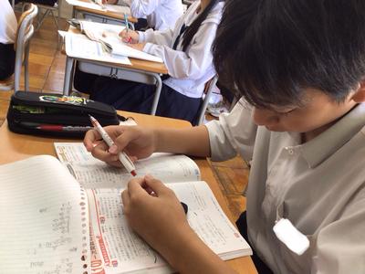 一次関数を利用して解く問題を考えていました。難しい問題ですが頑張っていました。