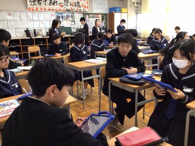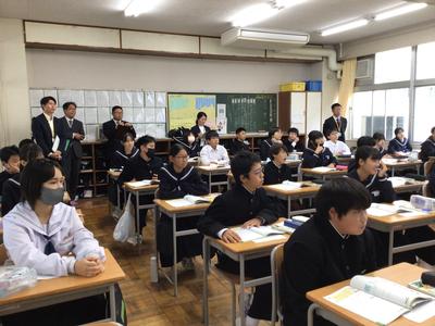 2時間目は1年生の保健体育、2年生の英語、1年生の数学、3年生の数学、3年生の社会を観ていただきました。