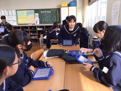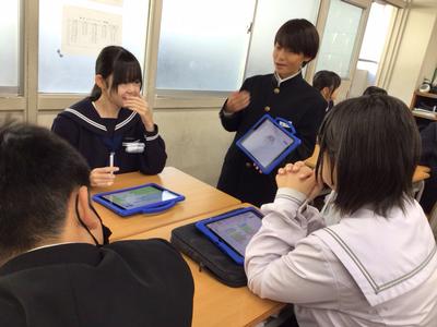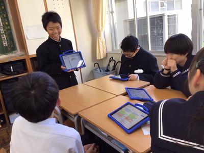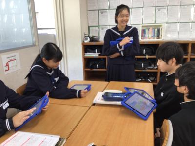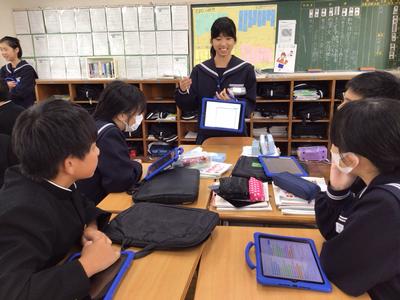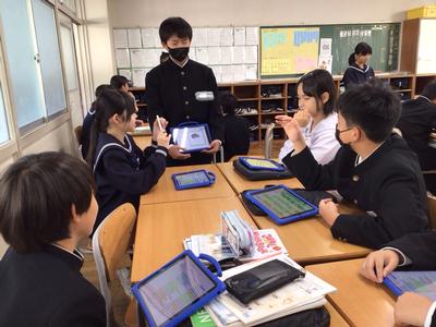 家族や友達から一人を選んで似顔絵を描いて、その人のことを英語で紹介していました。聞いている生徒は英語で質問していました。