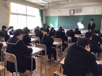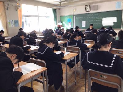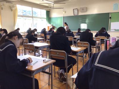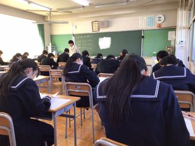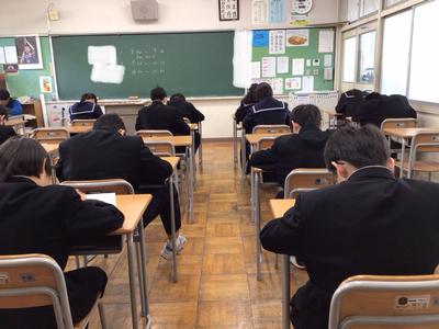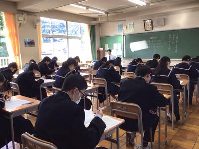 放射冷却の影響で今朝は随分と冷え込みましたが、久しぶりに気持ちのよい青空が広がっています。今日は3年生が学力診断テストを1、2年生が確認テストをしています。