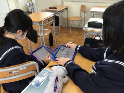 線分と平行線との関係について考えました。友達と自分の考えを伝え合いました。