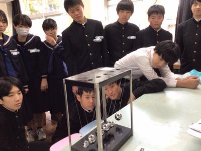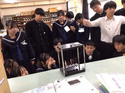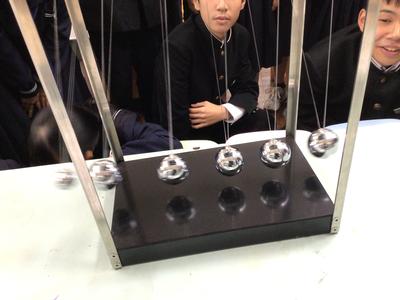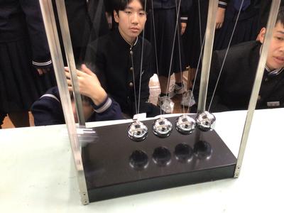力学的エネルギーの学習です。力学的エネルギーが保存されることを実験器具で確かめていました。