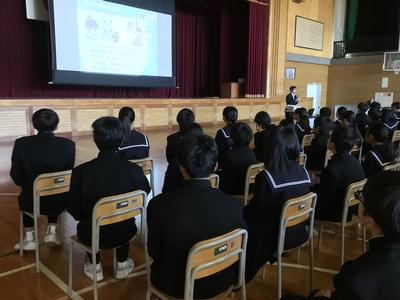 福井県警の方に来ていただき、ひまわり教室を行いました。SNSの使い方について親子で学びました。