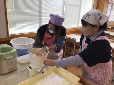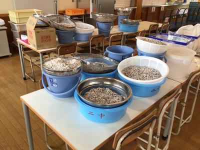 2年生が黒米の収穫感謝祭を行います。朝早くから保護者や地域の方々が準備をしてくださっています。