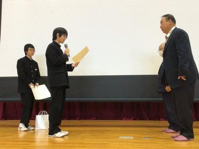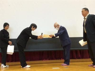 黒米の種まきから収穫までを振り返り、長年お世話になっている畠中さんと土井内さんに感謝状を贈呈しました。