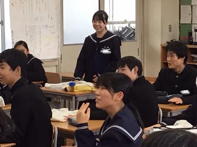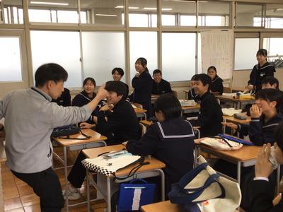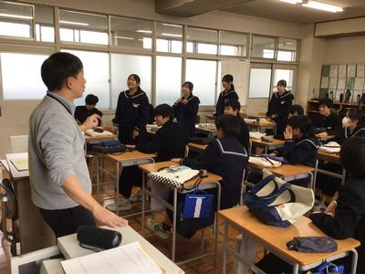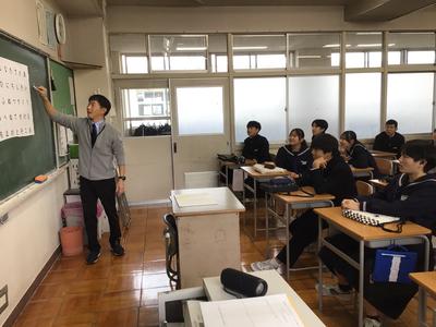 世界の様々なジャンルの音楽を味わおうという課題で学習していました。ラップでウオーミングアップした後、ヒップホップについて学習しました。とても楽しそうでした。