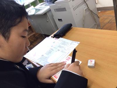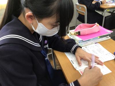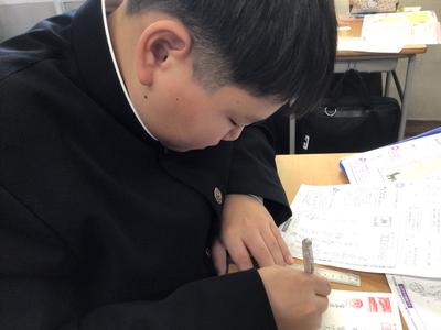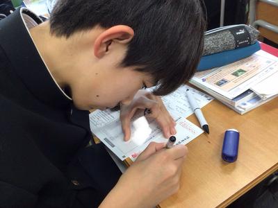 日頃からお世話になっている方への年賀状を書いていました。今までに年賀状を書いたことのある生徒は学級で数人だけでした。