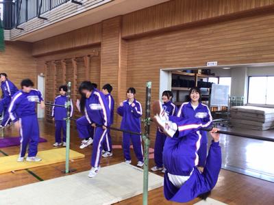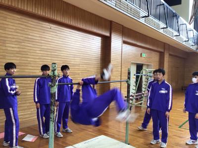 マット、跳び箱、鉄棒をしていました。個人で目あてを設定して積極的に挑戦していました。