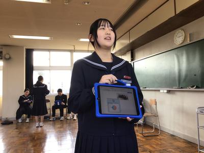 クラスの生徒にアンケートをとって、結果をわかりやすくグラフにして、友達にプレゼンしていました。とても上手にできました。