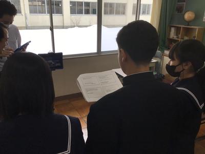 武生二中、武生三中、万葉中、武生五中の4校でオンラインでの交流学習を行いました。本校の外国籍の生徒がブラジルについての紹介やクイズをしました。他の3校は社会の地理分野の授業だったので、質問もたくさんありました。たいへん有意義な交流学習でした。