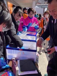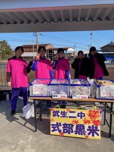 「しきぶ駅」が開業し、開業イベントで黒米を販売しました。1年生のボランティア5名が参加し、地域の方々を中心ににぎわいました。