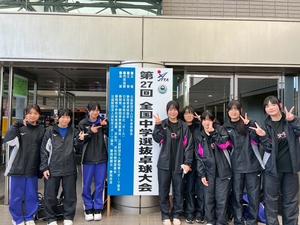 静岡県浜松市で開催される「全国中学選抜卓球大会」に女子卓球部が出場します。翌日からの試合に向けて、元気に出発しました。