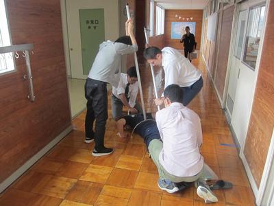 無事に確保が確認されると、全校生徒が体育館に避難し、安全確認を行いました。