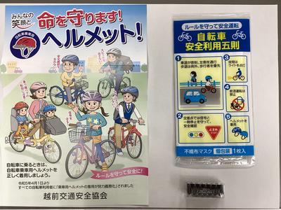 国高地区自治振興会「青少年育成部」より、地域の交通安全啓発活動の一環として、全校生徒に消しゴムと不織布マスクのセットを贈呈していただきました。いつも地域の方々にも見守っていただき、本当にありがとうございます。